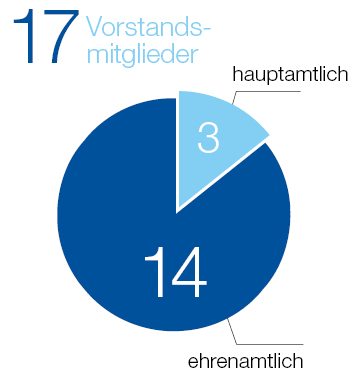 Vorstand mit 17 Mitgliedern, davon 3 hauptamtliche Vorstandsmitglieder; Verwaltungsrat mit 38 Mitgliedern.